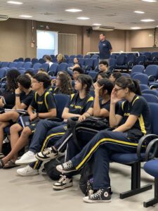 Os estudantes produzem redações com frequência e recebem devolutivas individualizadas. Segundo Vera, a correção vai além da atribuição de notas, contemplando observações sobre repertório, coesão, progressão argumentativa e domínio da norma-padrão. Além disso, simulados bimestrais são aplicados seguindo os critérios oficiais do ENEM, com feedback detalhado de corretores especializados, permitindo que cada aluno compreenda seus avanços e identifique pontos a melhorar.