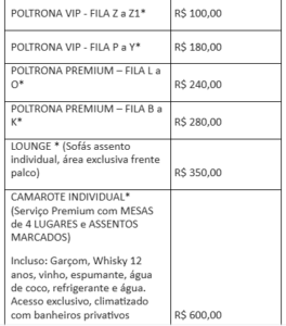 *Ingressos sujeitos à alteração de preços sem aviso prévio.