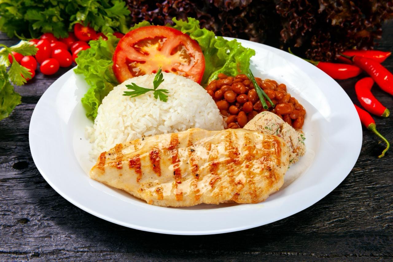 1/4 do prato de proteína: filé de frango ou carne moída ou filé de tilápia grelhado