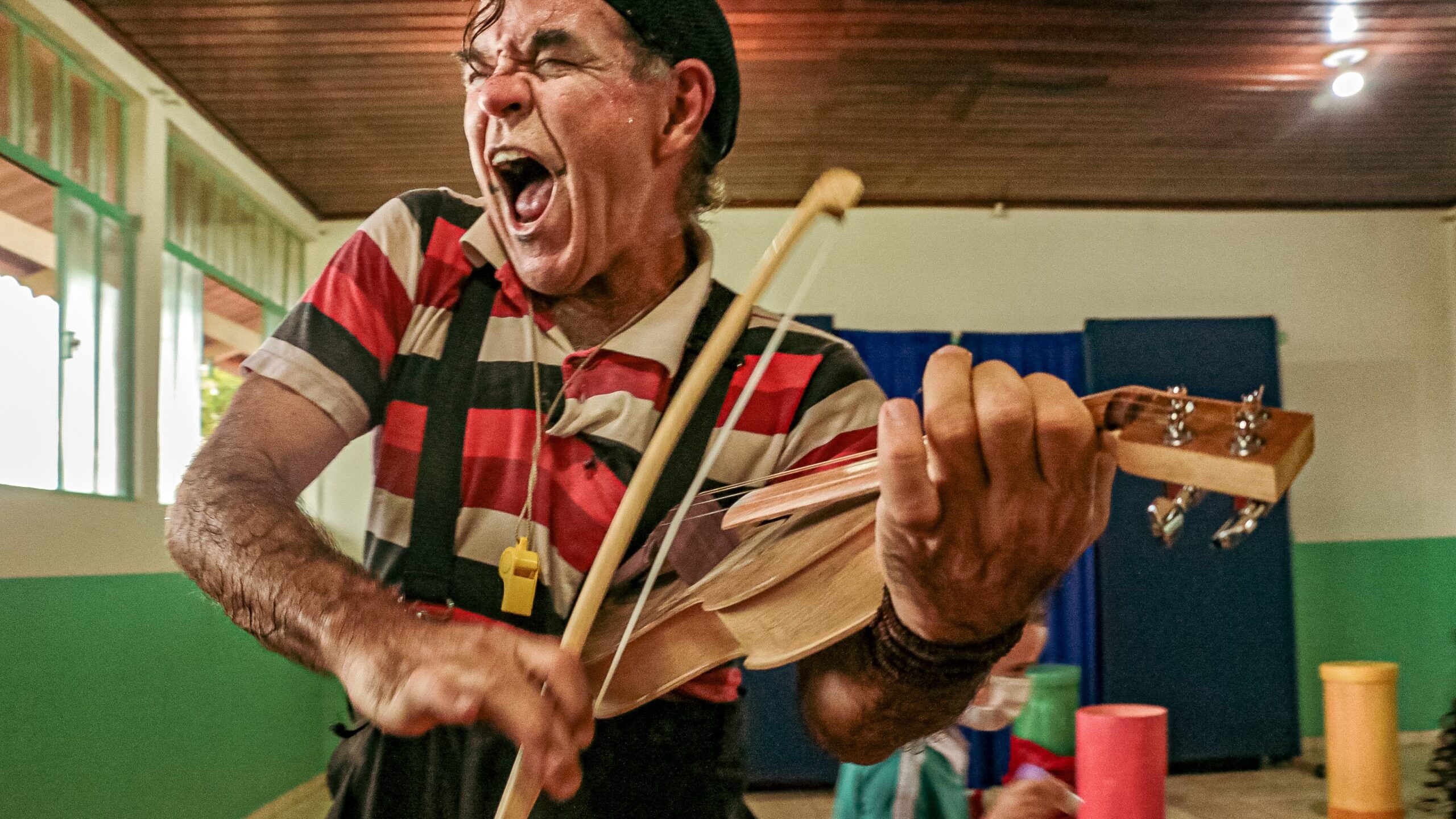 “O Concerto – Palhaçaria para Bebês” é um espetáculo criado com e para os pequeninos. Concebido por Zé Regino, a obra inaugura uma nova fase na trajetória do artista, que abandona a dramaturgia fechada, baseada em narrativas lineares, para mergulhar numa dramaturgia aberta, construída a partir da relação direta com o público. Essa abordagem, que ele denomina de arte relacional, é uma das essências da palhaçaria – uma arte que se alimenta do presente, da troca e da escuta.