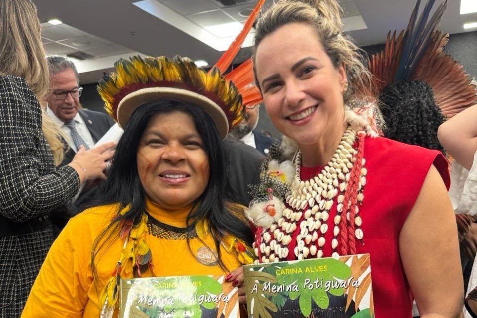 Durante sua agenda em Brasília, Carina Alves também apresentou à Ministra Sônia Guajajara e à presidente da FUNAI, Joenia Wapichana, o livro “A menina potiguara”, obra que escreveu para a série Literatura Acessível, inspirada em suas vivências junto à população da etnia potiguara de Baía da Traição, na Paraíba, com prefácio da atriz e ativista Dira Paes.