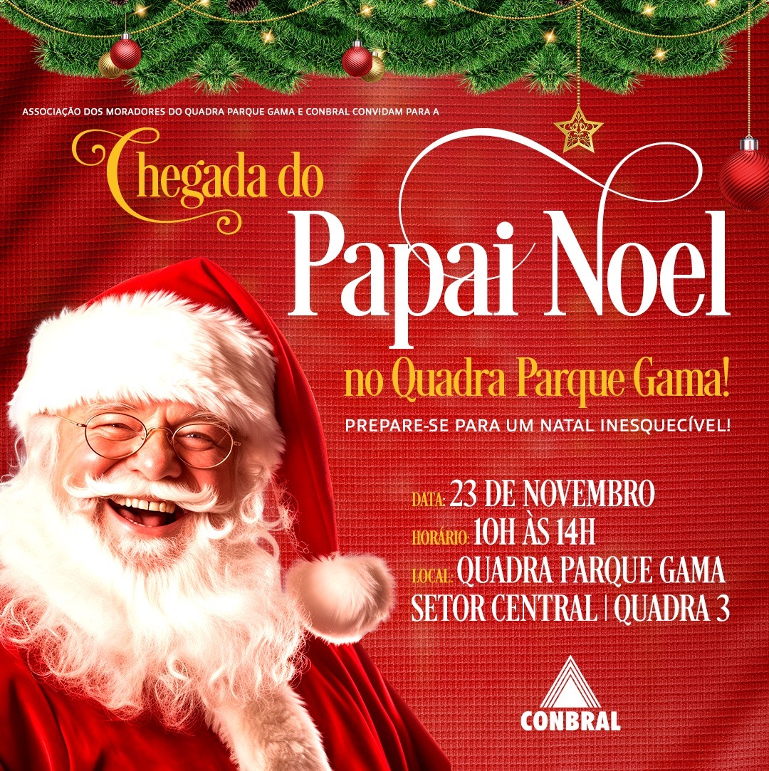 Faltando um pouco mais de um mês, a magia do Natal chega ao residencial Quadra Parque Gama. O bom velhinho chegará no próximo sábado, 23 de novembro, à praça do empreendimento. A Associação de Moradores do Quadra Parque Gama, em parceria com a CONBRAL, irá promover uma manhã especial para a criançada, repleta de atividades gratuitas e aberta para toda a comunidade, a partir das 10h. O evento será realizado na Quadra 3, do Setor Central, e entre as atrações estarão: brinquedos infláveis e distribuição de lanches, como pipoca e algodão doce. O evento é gratuito e aberto para a comunidade.