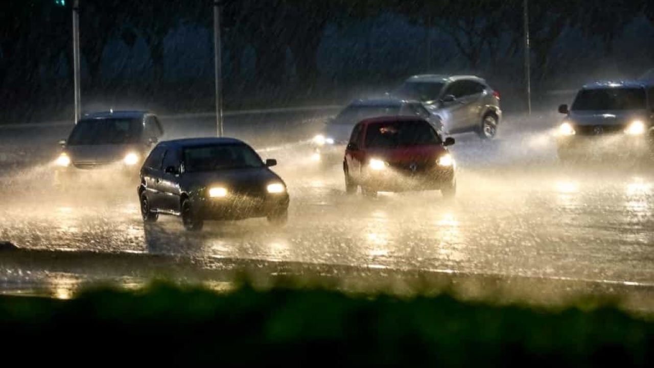 Com visibilidade reduzida e acúmulo de água na pista, temporada de chuva exige mais atenção de motoristas e pedestres | Foto: Joel Rodrigues/Agência Brasília
