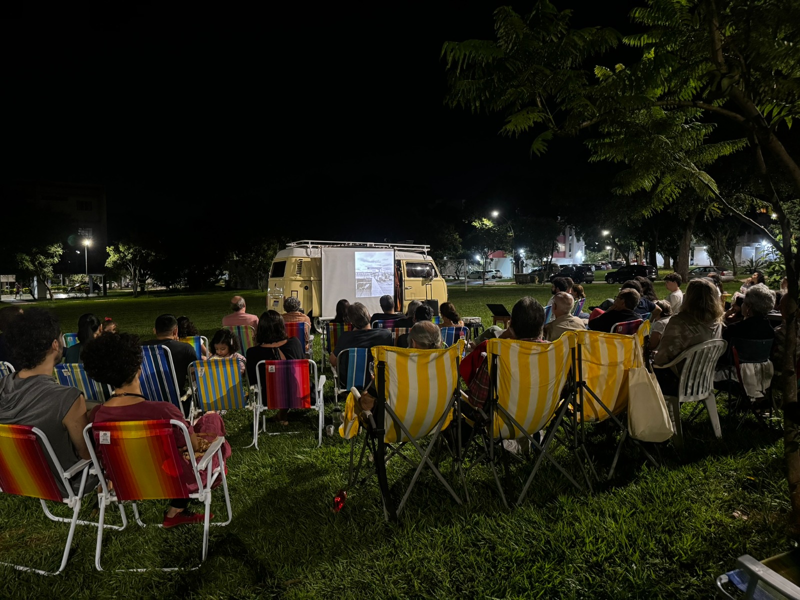 O Cine Pipoca no Rolê, projeto de extensão do curso de Audiovisual da Universidade de Brasília (UnB), encontrou formas de fazer o cinema brasileiro circular pelas cidades. Com uma Kombi-casa equipada, cadeiras de praia e esforço coletivo, a iniciativa vai às Regiões Administrativas do Distrito Federal e exibe filmes gratuitamente. Em dois anos de encontros presenciais, já foram realizadas 11 sessões ao ar livre, impactando mais de 600 pessoas.