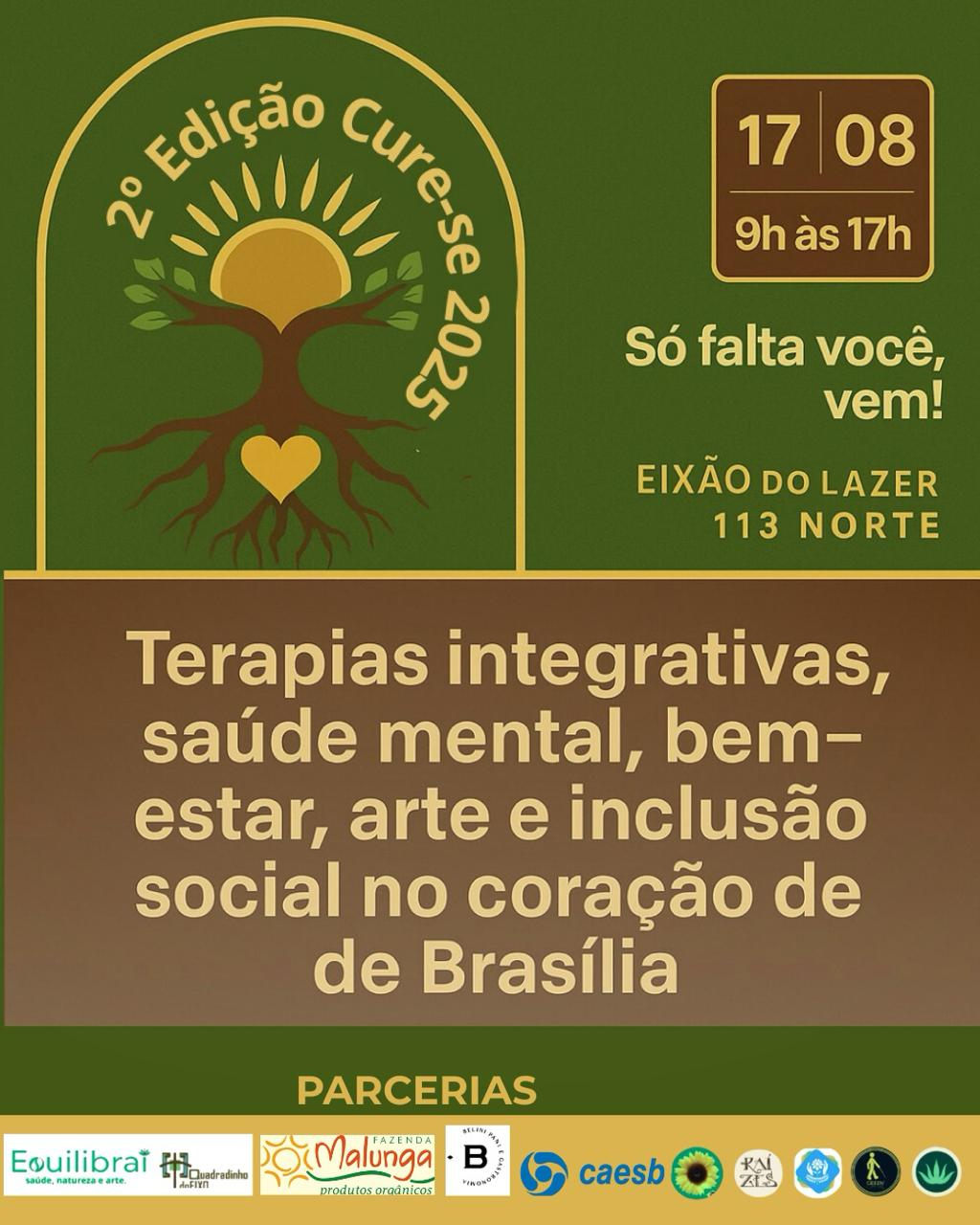 A promoção é do Instituto EQUILIBRAÍ que desenvolve ações comunitárias em saúde mental, arte, inclusão social e conexão com a natureza. É a segunda edição do projeto CURE-SE BEM o qual promove saúde integral e bem-estar por meio de Práticas Integrativas e Complementares em Saúde (PICS) — como acupuntura, fitoterapia e outras — seguindo a Política Nacional de PICS no SUS.