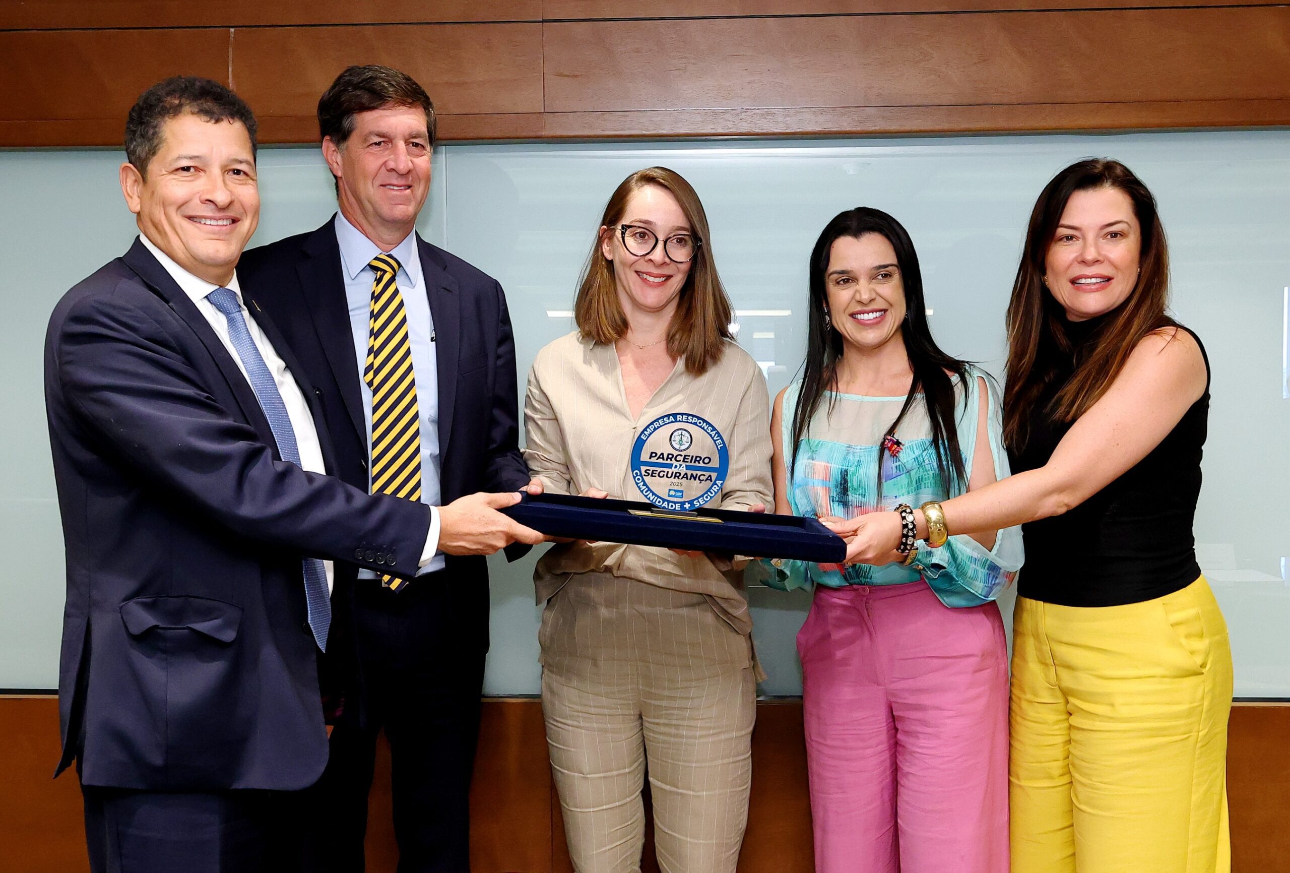 Com a assinatura do acordo, Natália Vaz e Vander Giordano receberam das mãos do secretário de Segurança Pública (SSP-DF), Sandro Avelar; e das secretárias de Justiça e Cidadania (Sejus-DF), Marcela Passamani; e da Mulher (SMDF), Giselle Ferreira, o selo Parceiro da Segurança, assumindo o compromisso de desenvolver ações de prevenção às violências e à criminalidade.