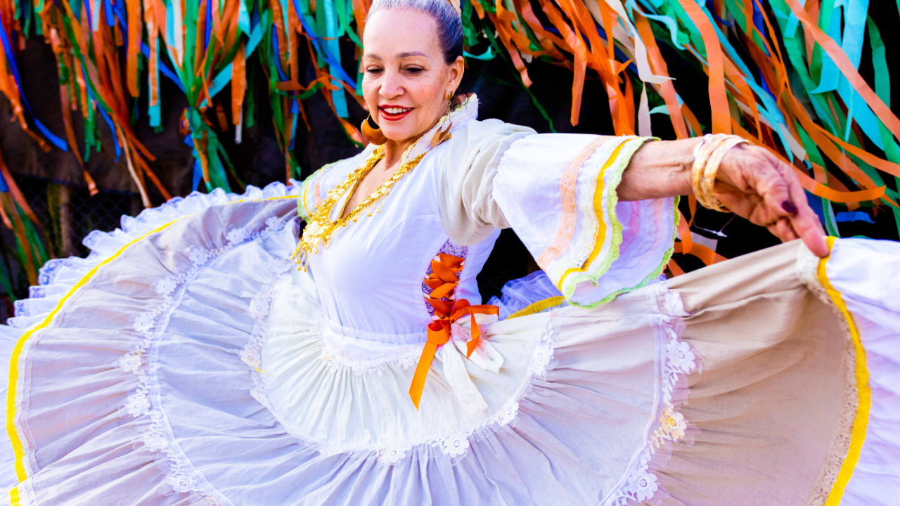 Tetê Alcândida tem 66 anos de vida e mais de 30 anos de trajetória cultural. Nascida em família cigana no município de Novo Brasil (GO), é filha de pai palhaço de Folia de Reis e neta de rezadeira artesã. Chegou em Brasília aos 17 anos, onde consolidou sua carreira atuando como bonequeira, sapateira, brincante, cenógrafa, contadora de histórias e educadora popular. Desde 1990, assina trabalhos de cenografia e figurinos. É também fundadora do Bloco Carnavalesco Mamãe Taguá, mestra da Coletiva Casa Moringa e coordenadora da Ocupação Cultural Batalhão das Artes, em Taguatinga.