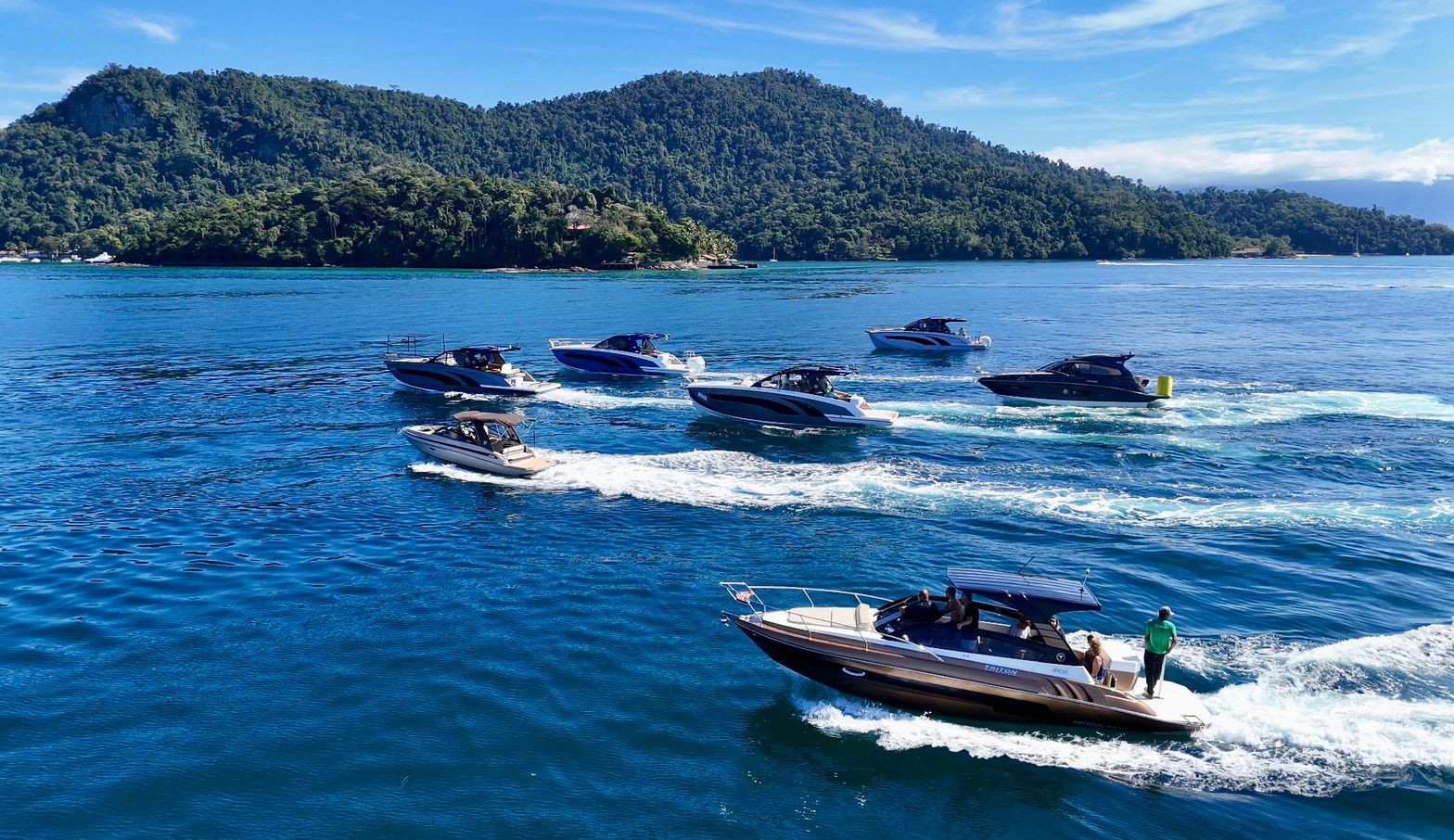 O encontro foi realizado no cenário paradisíaco da Ilha Gipóia, no último sábado de julho (26), e contou com almoço no tradicional Bar do Luiz, música com DJ e test drives em modelos de embarcações da Triton. Dessa forma, os consumidores puderam avaliar os diferenciais da consagrada marca. Além do modelo 38 Flyer, também puderam conferir as lanchas Triton 34 Flyer, 47 Fly, 35 HT, 300 Sport e 250 Open. O evento contou ainda com exposição de motores da Yanmar e jets da Yamaha.