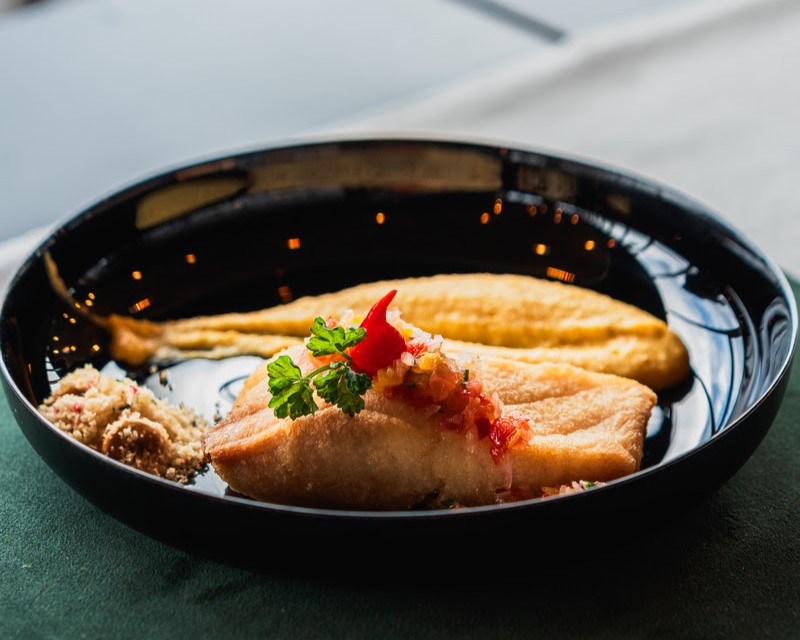 À noite, o jantar oferece entradas como os Mini Carpaccios de Lagarto com aioli de mostarda dijon e redução balsâmica e a Croqueta Suína, recheada de costela e acompanhada de uma emulsão de pimenta biquinho. Entre os pratos principais, o Pirarucu Mezanino é um destaque, grelhado e servido com purê de banana da terra assada, farofa de castanha e vinagrete de pimenta biquinho, trazendo sabores regionais do Cerrado. Outras opções incluem o Risoto de Pescoço de Peru, inspirado nas paellas espanholas, e a Carbonara de Abobrinha, uma versão vegetariana com cogumelos grelhados.