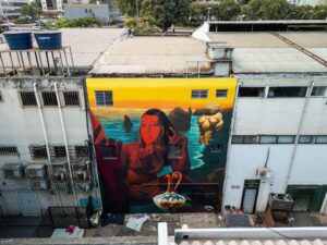 As artistas legaram obras de forte impacto. Hanna Lucatelli pintou um mural que celebra o feminino de forma poética, em escala monumental, enquanto Juliana Lama trouxe “sono sonho som”, trabalho que reflete sobre a importância do descanso e do sonho para a criação. Rowan Bathurst apresentou “A Flecha do Tempo”, mural que conecta gerações de mulheres, da Vênus de Willendorf às mulheres contemporâneas. Ledania & Shaday Gomez trouxeram a obra “A ansiedade altera a percepção da realidade”, inspirado no fenômeno psicológico, mostrando como a ansiedade fragmenta a percepção, fazendo a mente criar imagens irreais.