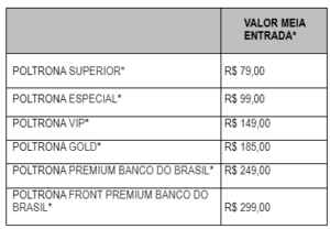 Os ingressos seguem disponíveis no site da Bilheteria Digital, com parcelamento em até seis vezes sem juros para clientes dos cartões BB Visa.