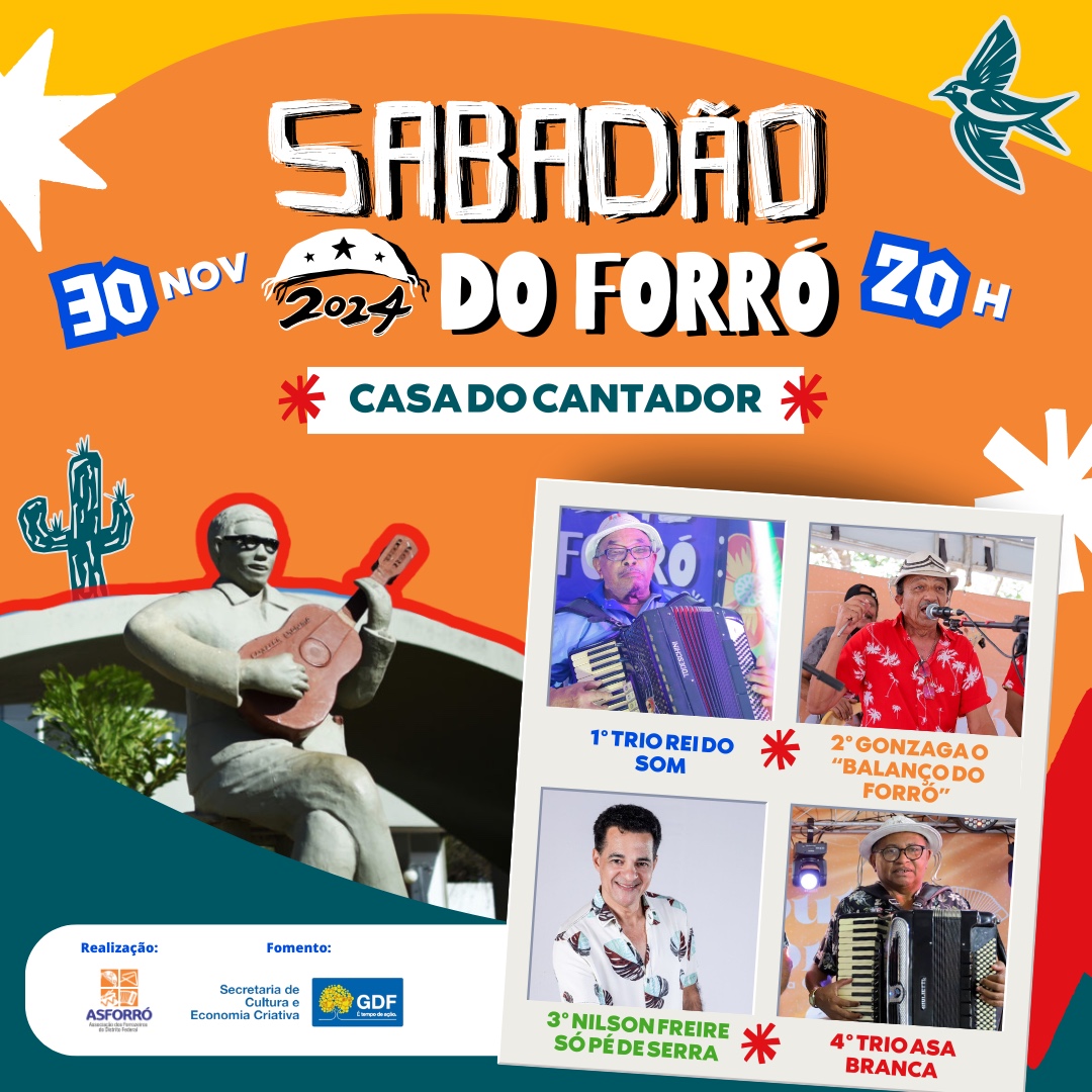 Neste sábado, 30 de novembro, a Casa do Cantador de Ceilândia receberá uma maratona de forró tradicional, com os trios mais renomados do Distrito Federal. Organizado pela Associação dos Forrozeiros do Distrito Federal (Asforró-DF) e apoiado pela Secretaria de Cultura e Economia Criativa do DF, o evento terá início às 20h e conta com entrada gratuita. Entre as atrações estão Trio Rei do Som, Nilson Freire, Gonzaga, o Balanço do Forró e Trio Asa Branca.