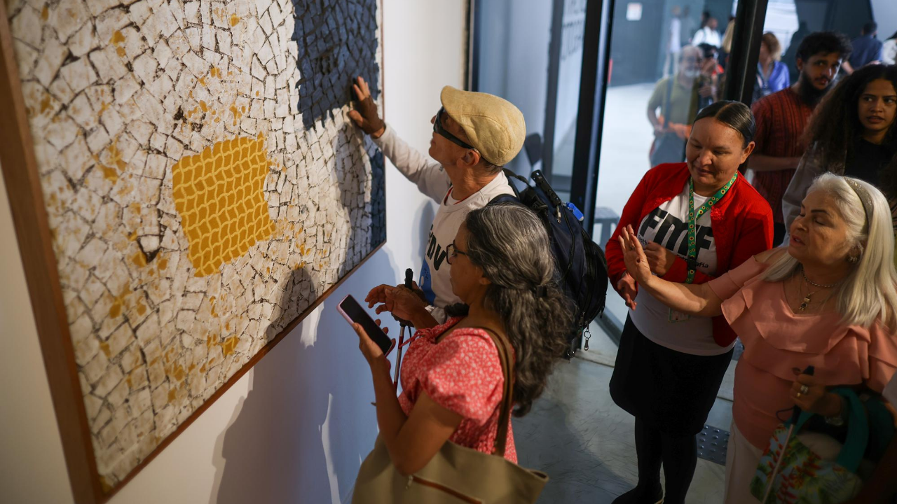 Ao todo, são 17 quadros táteis de diferentes dimensões — entre eles, um painel de 130×90 cm — que retratam lugares percorridos e sentidos durante o projeto. Detalhe: as obras de arte estão disponíveis para o toque de todos os visitantes, num convite direto à empatia e à experimentação sensorial.